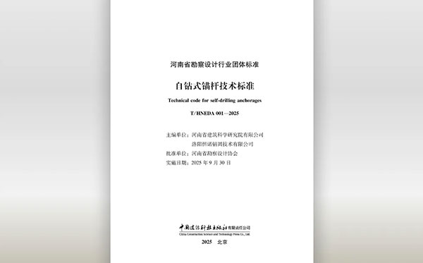 洛陽恒諾錨固技術有限公司在錨固領域深耕20余年,擁有豐富的項目經(jīng)驗與技術積累。為回應行業(yè)發(fā)展需求,河南省勘察設計協(xié)會牽頭組織編制《自鉆式錨桿技術標準》技術白皮書,并指定在自鉆式錨桿技術領域具備扎實實踐基礎的洛陽恒諾錨固技術有限公司,與河南省建筑科學研究院有限公司共同承擔主編工作。