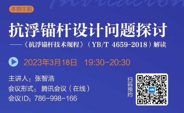 發(fā)布日期:2023-04-23 11:40報(bào)告從結(jié)構(gòu)設(shè)計(jì)的角度結(jié)合《抗浮錨桿技術(shù)規(guī)程》相關(guān)規(guī)定對(duì)抗浮錨桿設(shè)計(jì)中一些常見問(wèn)題和疑問(wèn)如:設(shè)防水位確定、抗浮設(shè)計(jì)幾個(gè)基本概念、抗浮樁與抗浮錨桿選擇、群錨穩(wěn)定性驗(yàn)算、抗浮錨桿極限承載力與特征值確定、抗浮錨...