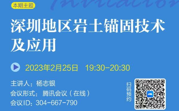 發(fā)布日期:2023-02-11 10:45巖土錨固學苑將于2023年1月14日(周六)19:30-20:30舉辦第9期,本期主題:巖土工程柔性支護新技術及應用,歡迎廣大巖土錨固領域愛好者參與交流。...